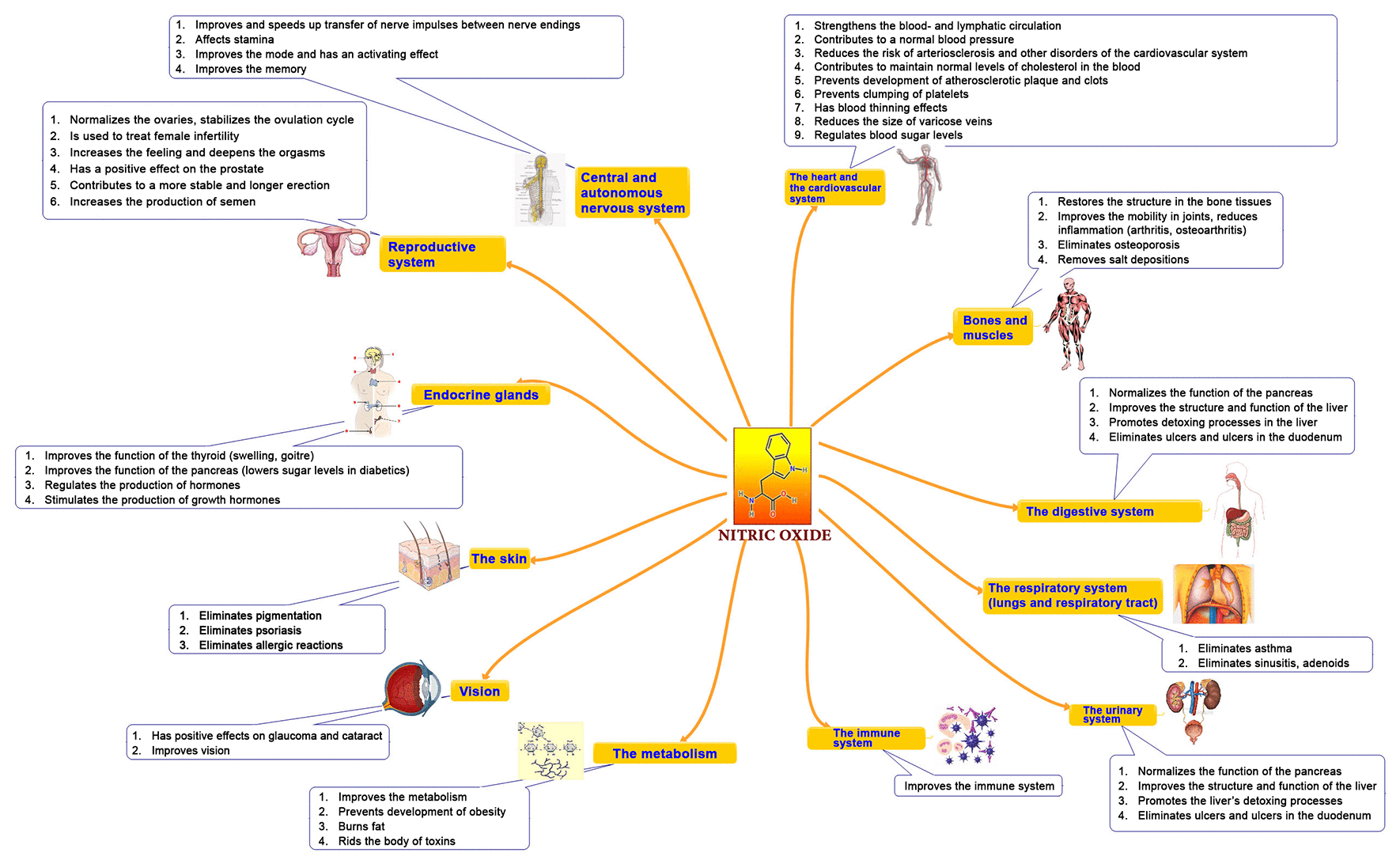 Endogenous nitric oxide is created inside all blood vessels and capillaries, but with aging, the production of NO decreases, causing poor blood circulation, which is the cause of almost all health problems.