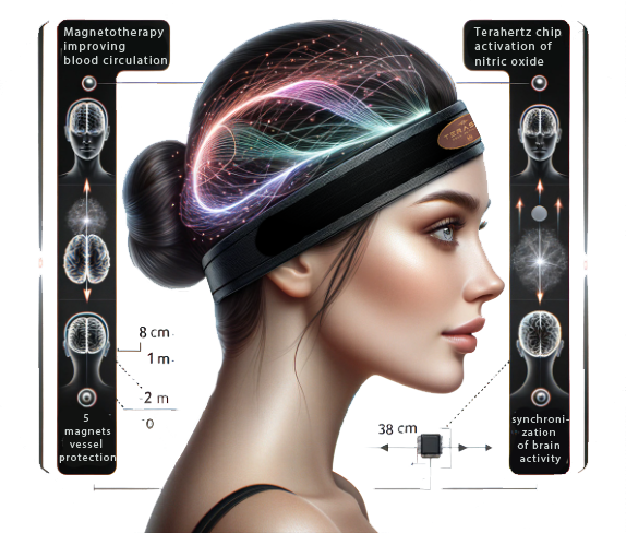 med Terastim Pro™ – ett innovativt magnetiskt pannband designat för att skydda och aktivera din mest värdefulla tillgång. Vår unika teknologi erbjuder dubbel åtgärd: den skyddar inte bara dig från de negativa effekterna av magnetiska stormar och fluktuationer i atmosfärstryck, utan förbättrar också kognitiva funktioner. Med Terastim Pro får du mental klarhet, förbättrad koncentration och ökad hjärnprestanda, vilket låter dig nå nya höjder i ditt personliga och professionella liv.